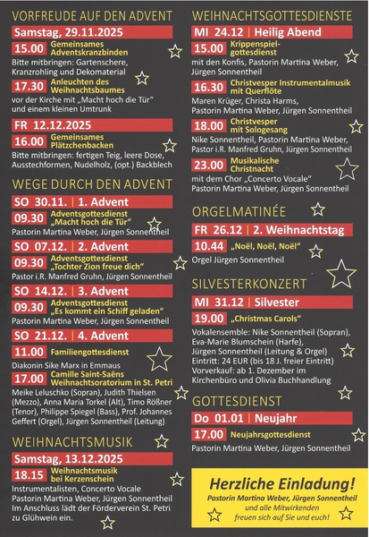 | 13.12.25 | 18:15 | Weihnachtsmusik bei Kerzenschein |